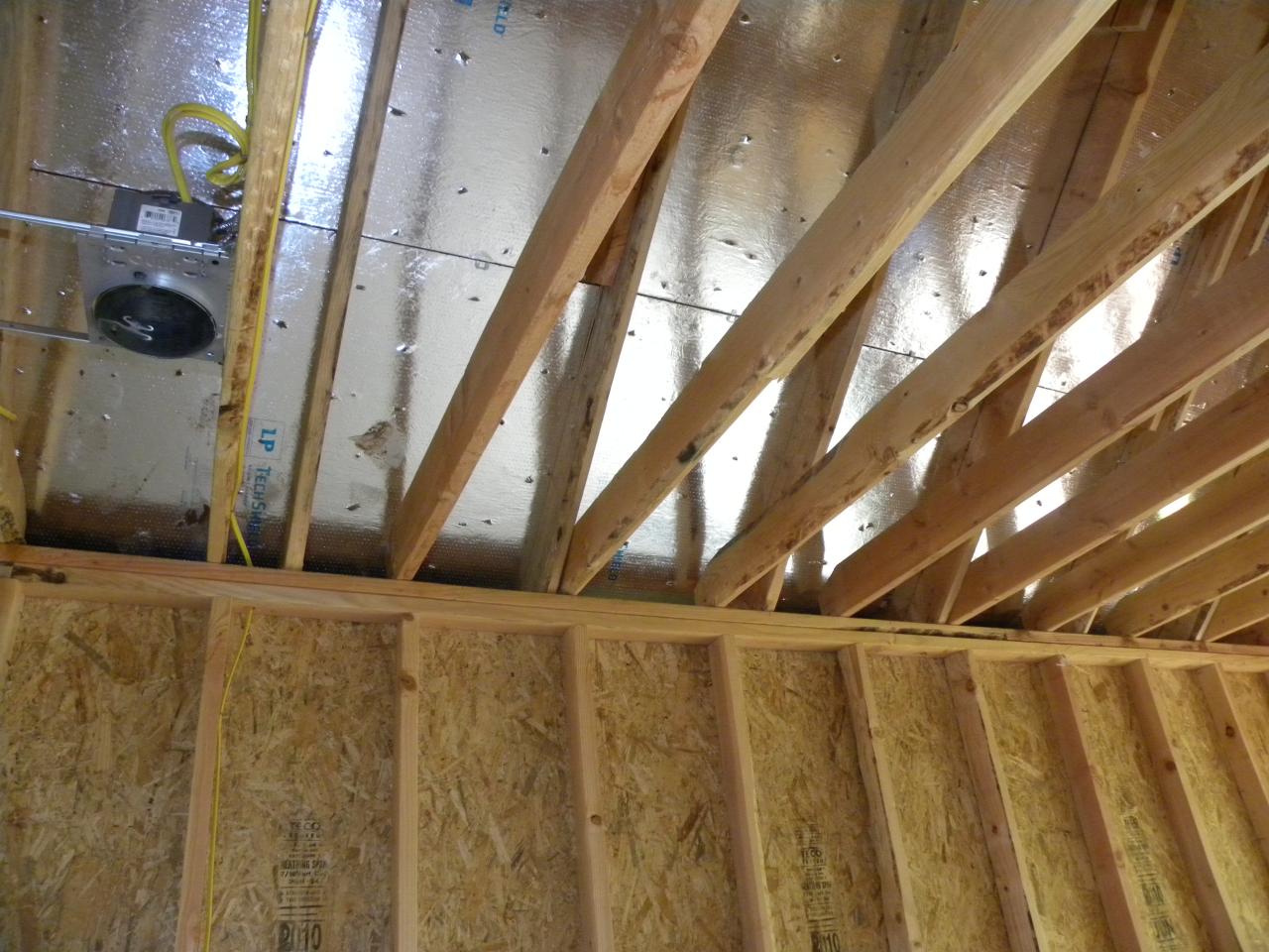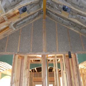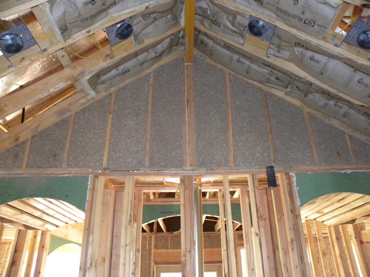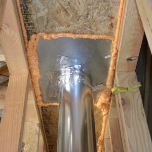 Blown-in cellulose fits tightly around all pipes and outlets.