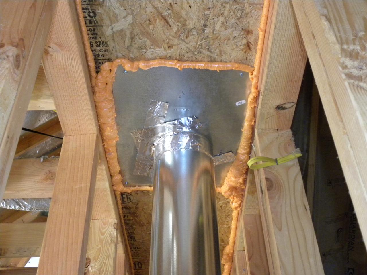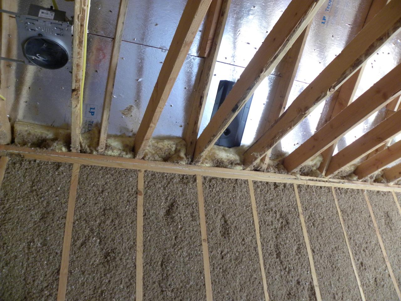 Blown-in cellulose fits tightly around all pipes and outlets.